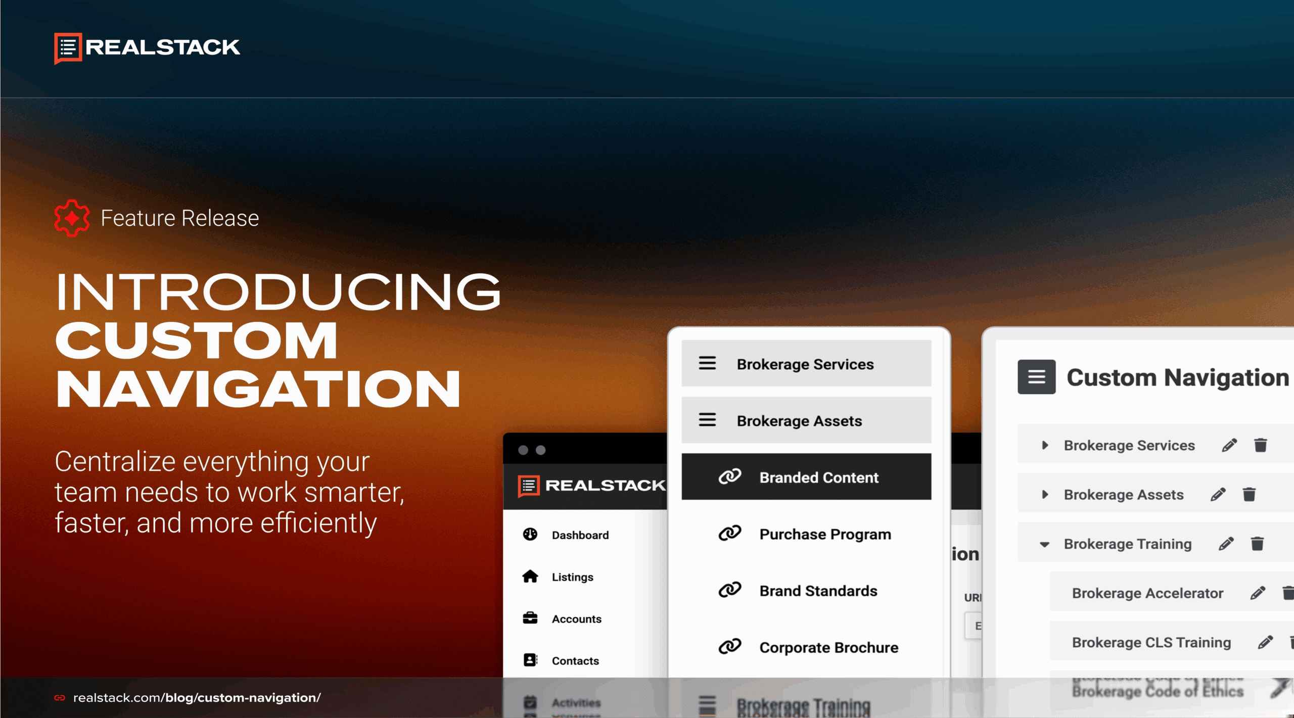 At REALSTACK, we’re always looking for ways to make our platform more useful, user-friendly, and tailored to our clients’ unique needs. That’s why we’re thrilled to announce our latest feature: Custom Navigation. This feature allows brokerage admins to create, manage, sort, and display custom navigation items in REALSTACK for your network, brokerages, and offices, offering a centralized portal of resources for your agents.