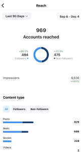 Here, you can differentiate whether reels, posts, lives, etc., are getting the most attention. Once you have this information, you can use it to post more of your content that is gaining traction to grow your audience.