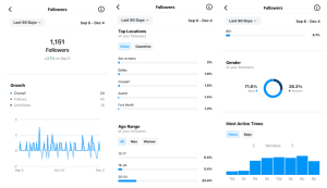 Once you completely understand your audience, you can shape your content and profile to target the right people. The “Total followers” section of your account insights will take you deeper into your audience. Here, you can understand where your audience resides, their age and gender, and when they are active. You can use this information to tailor your content to the audience you are reaching. For example, if your audience is primarily 35-44-year-old men from Dallas, you can create content with interest on 34-44 yo men from Dallas.