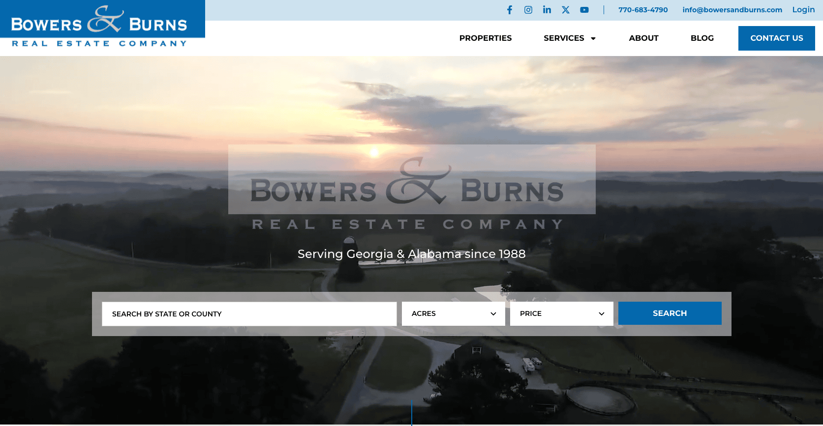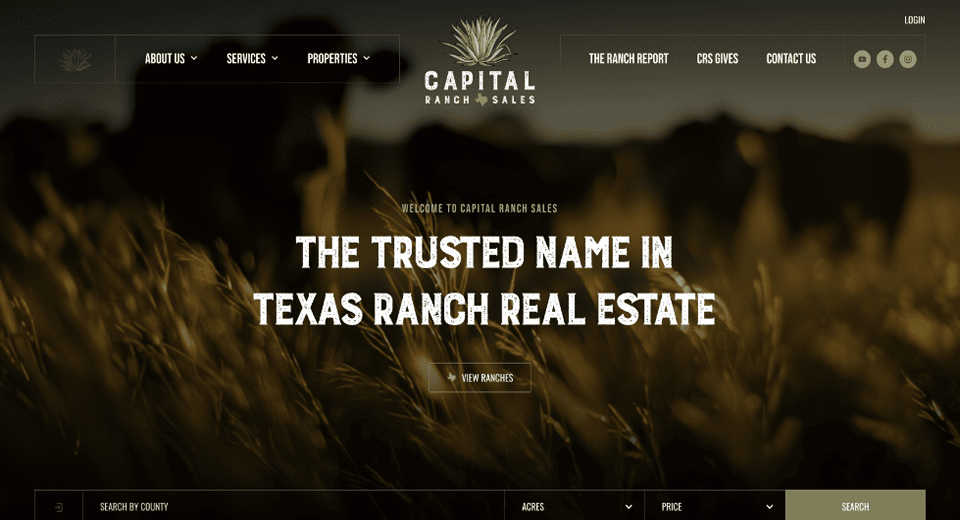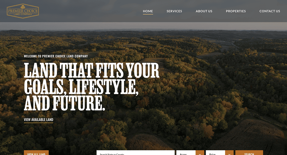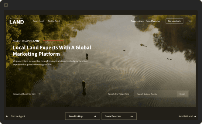 Our team was tasked with designing and developing a new website for KW Land. KW Land is a land brokerage whose agents are local, accomplished experts in land sales and acquisitions, including agricultural land, timberland, ranch land, recreational land, equestrian estates, land development, hunting land, and other specialties. The client’s goal was to have a luxurious, clean, modern website with a bold design that represents their business in a professional and engaging way. The website was to be designed to attract potential buyers, showcase their available properties, and provide a user-friendly browsing experience.