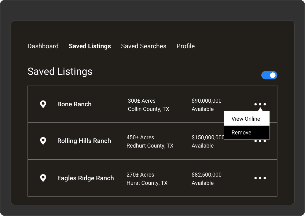 Visitors can organize and manage all their saved searches, listings, and personal information from one spot on their dashboard. This creates a user-friendly experience for all website visitors.
