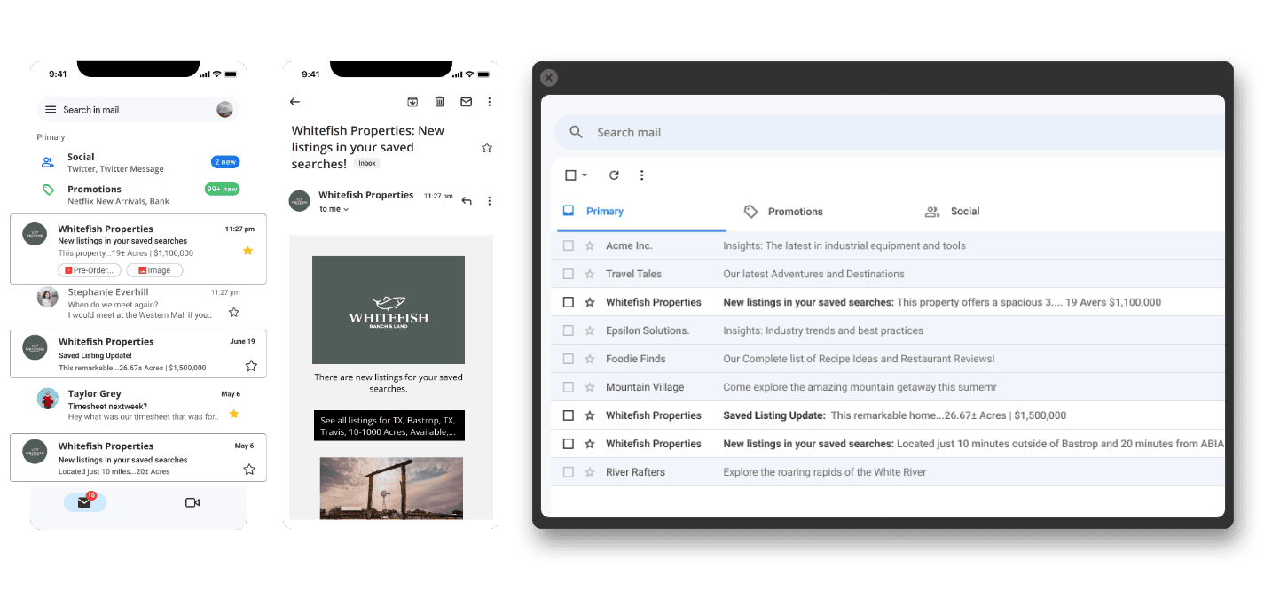 When your land brokerage website has MLS IDX from REALSTACK, the saved searches will also pull matching MLS listings to send to your website members, exponentially increasing your opportunity to represent a buyer.