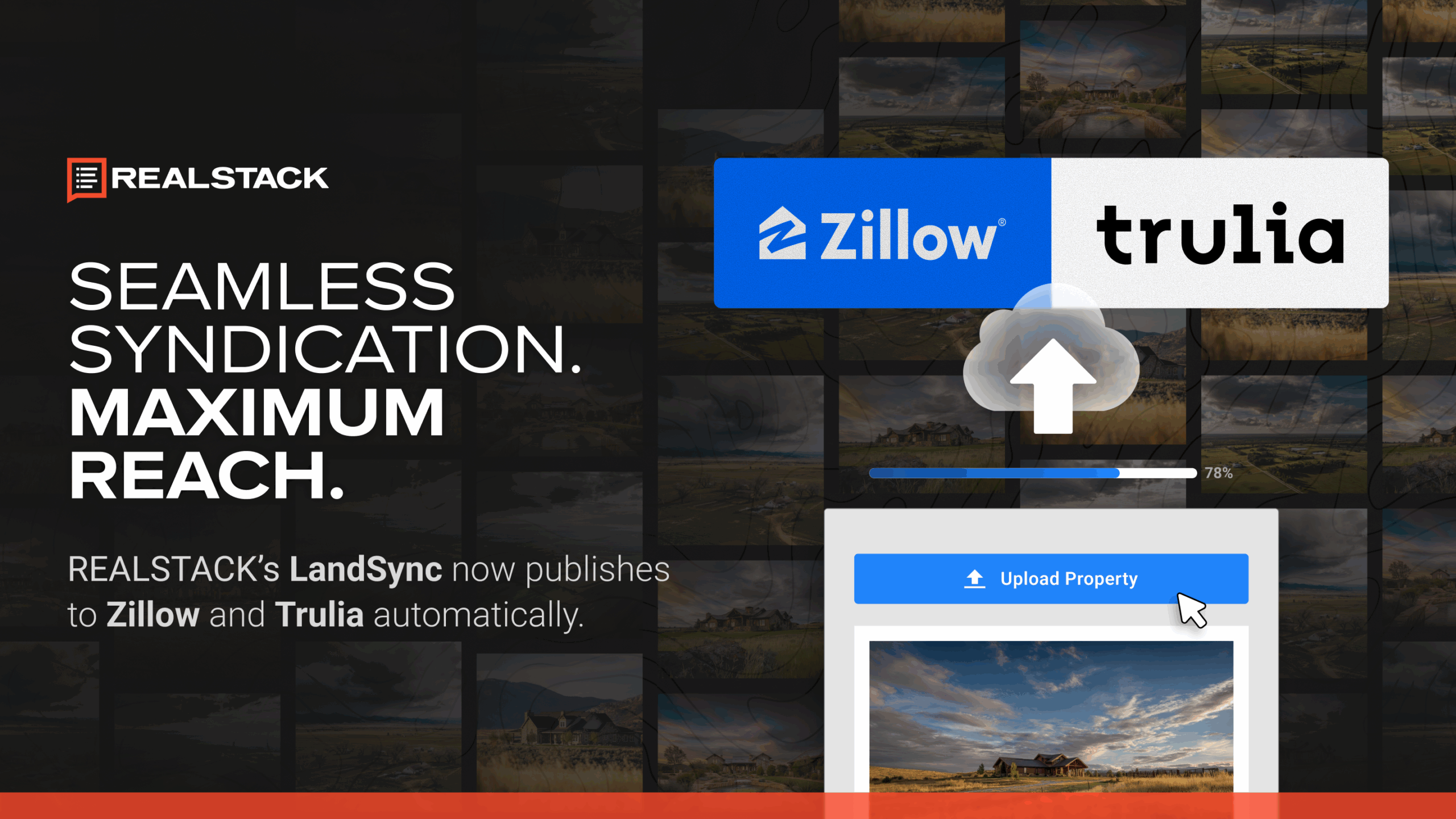 DALLAS, TX — September 2025 — REALSTACK, the land industry leader in brokerage websites and software, has announced syndication of listings to Zillow.com and Trulia.com, two of the most widely recognized real estate marketplaces in the United States. This integration is included with REALSTACK’s LandSync listing syndication product, enabling brokers and agents to expand property marketing reach, attract more qualified buyers, and streamline listing distribution.