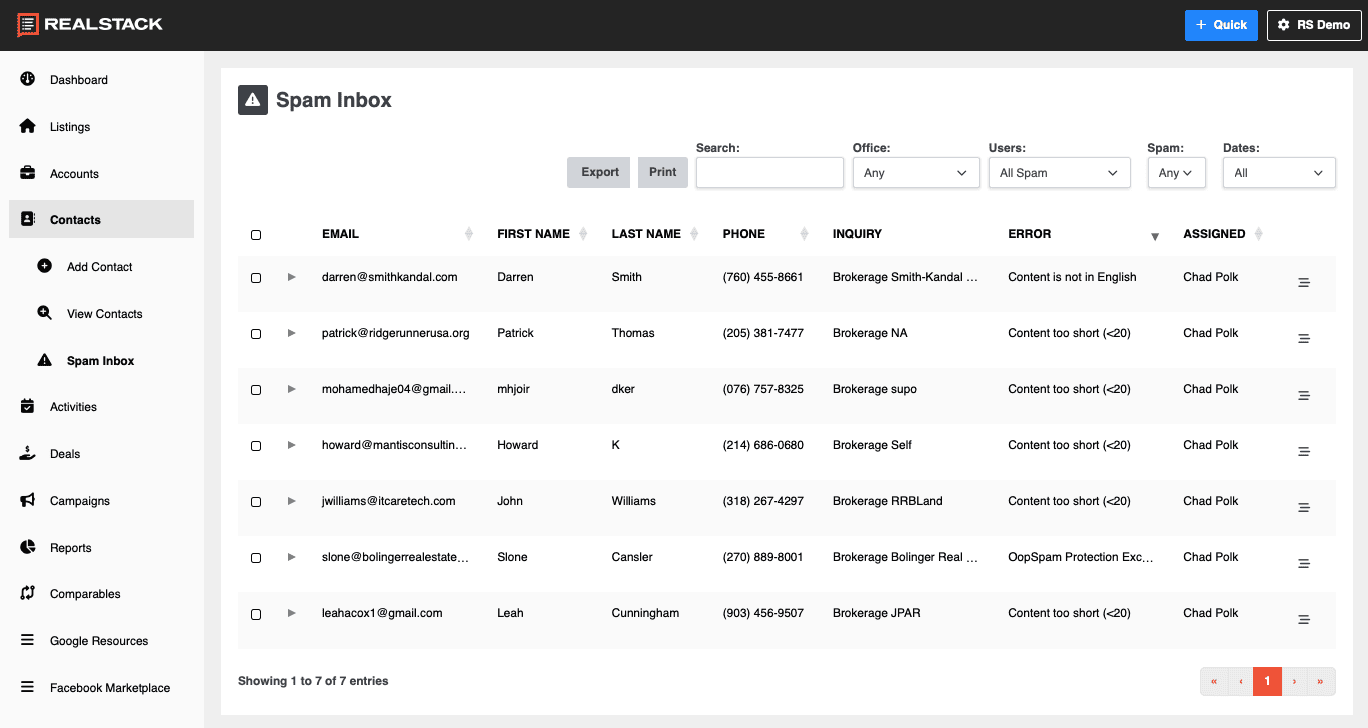To solve this problem, REALSTACK has implemented a Spam Inbox feature that filters out unwanted emails so you can focus on high-quality, actionable leads. This enhancement is part of our commitment to delivering smarter, more efficient software solutions for land brokers and agents.